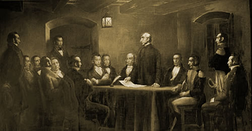 Sesión de la Sala Representante de la Provincia Oriental”. Óleo de Eduardo Amézaga